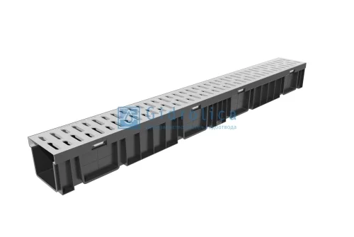 Комплект Gidrolica Light: лоток водоотводный ЛВ -10.11,5.9,6 - пластиковый с решеткой РВ -10.10,8.100 стальной оцинкованной, кл. A15 (08066)