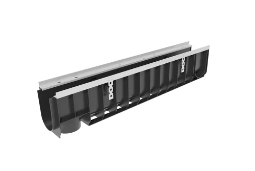 Пластиковый лоток повышенного проходного сечения (9 л/мин) высотой 20 см предназначен для скорейшего отвода потоков дождевой, снеговой, технической воды, скапливающейся на автомагистралях интенсивного движения, предприятиях, стоянках грузового транспорта.