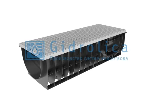 Комплект Gidrolica Light: лоток водоотводный ЛВ-30.38.28 - пластиковый c решеткой РВ -30.37.100 ячеистой стальной оцинкованной, кл. А15 (0832A)