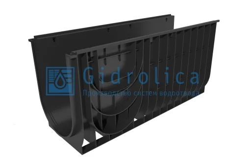 Водоотводящий пластиковый лоток стандартного исполнения предназначен для установки в бетонное основание коммуникаций сбора и утилизации снеговых, дождевых, талых вод в системе серии Gidrolica® Standart.
