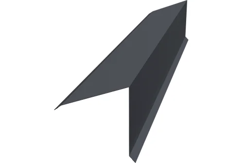 Планка конька односкатной кровли предназначена для защиты от попадания влаги, грязи в подкровельное пространство и от срыва листов порывами ветра, закрывая листы металлочерепицы или профнастила на коньке и наружных переломах кровли.