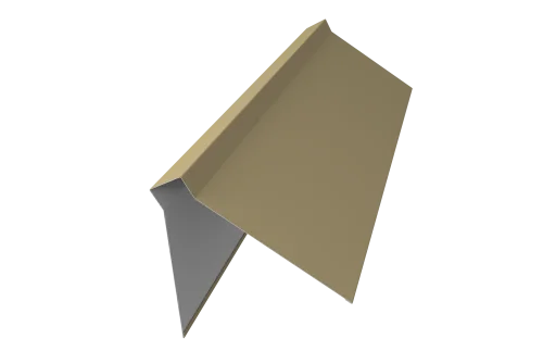 Планка конька плоского предназначена для защиты от попадания влаги, грязи в подкровельное пространство и от срыва листов порывами ветра, закрывая листы металлочерепицы или профнастила на коньке и наружных переломах кровли.