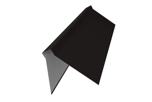 Планка конька плоского предназначена для защиты от попадания влаги, грязи в подкровельное пространство и от срыва листов порывами ветра, закрывая листы металлочерепицы или профнастила на коньке и наружных переломах кровли.