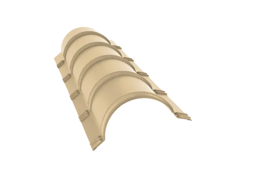 Конек полукруглый / полукруглый малый — защищает листы металлочерепицы от смещения при сильных порывах ветра.