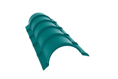 Конек полукруглый / полукруглый малый — защищает листы металлочерепицы от смещения при сильных порывах ветра.