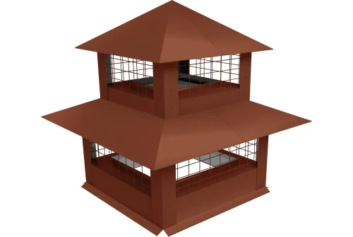 Дымник на трубу двойной с сеткой 630х630мм 0,5 Satin Matt TX с пленкой RAL 8004 терракота