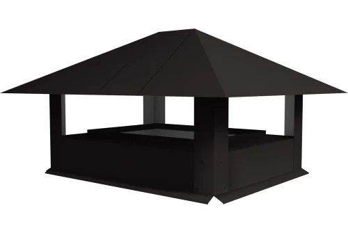 Благодаря основанию дымника (стальной обруч), достигается дополнительная защита от разрушения, т.к. оно стягивает верхнюю часть трубы. Также дымник придает кровле эстетичный и законченный внешний вид.
