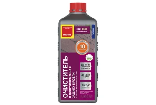 Средство NEOMID 660 Очиститель кровли концентрат 1:9 - предназначено для удаления и подавления роста мха, плесени, грибков, водорослей.