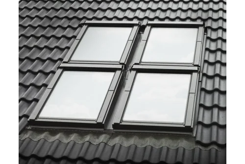 Для того чтобы сделать мансардное окно в группе с другими окнами на различных профилированных кровлях применяются специализированные оклады KZV.