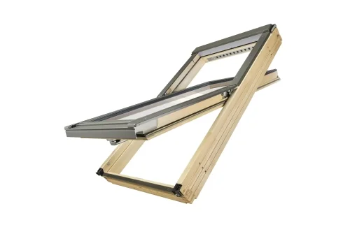 Мансардное окно со среднеповоротным открыванием FAKRO — самая популярная конструкция окна для крыши. Благодаря фрикционным петлям, располагающимся в ее центральной части, створку окна можно оставлять в позиции наклона, а также поворачивать вокруг оси на 180°, что значительно облегчает мытье внешнего стекла.