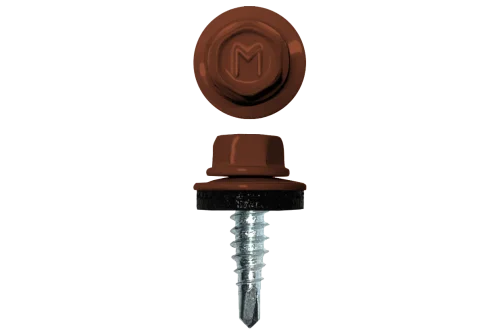 Кровельные саморезы Daxmer - по металлу имеют частую резьбу, а специальная металлическая шайба с ЕРDМ-уплотнителем 2,8 мм обеспечивает плотное прилегание профилированного металла (кровли) к обрешетке, а также препятствует попаданию влаги.