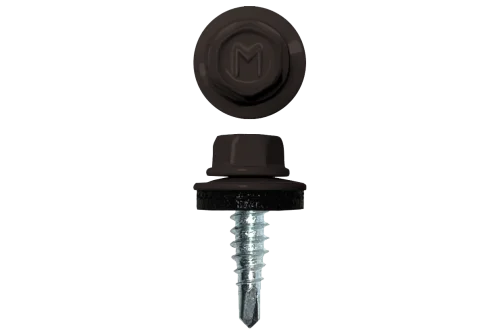 Кровельные саморезы Daxmer - по металлу имеют частую резьбу, а специальная металлическая шайба с ЕРDМ-уплотнителем 2,8 мм обеспечивает плотное прилегание профилированного металла (кровли) к обрешетке, а также препятствует попаданию влаги.