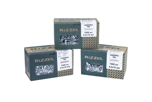 Саморез ПШС Rizzel - с напрессованой шайбой имеют широкую плоскую головку под крестовидную биту (PH2), которая одновременно выполняет роль шайбы.