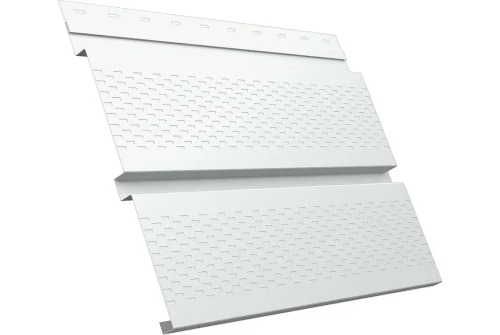 Софит металлический Квадро Брус Grand Line с перфорацией 0,45 PE с пленкой RAL 9003 сигнальный белый
