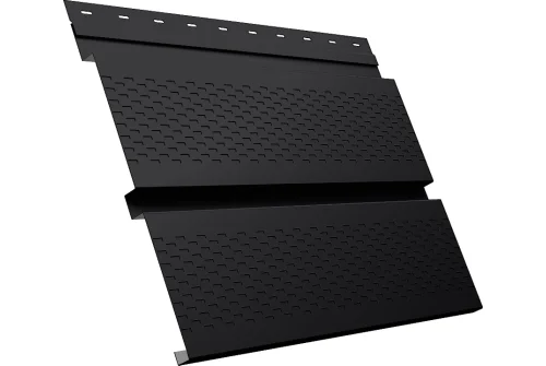 Софит металлический Квадро Брус Grand Line с перфорацией 0,5 PurLite Matt с пленкой RAL 9005 черный