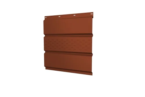 Софит металлический Grand Line центральная перфорация 0,5 Satin с пленкой RAL 8004 терракота