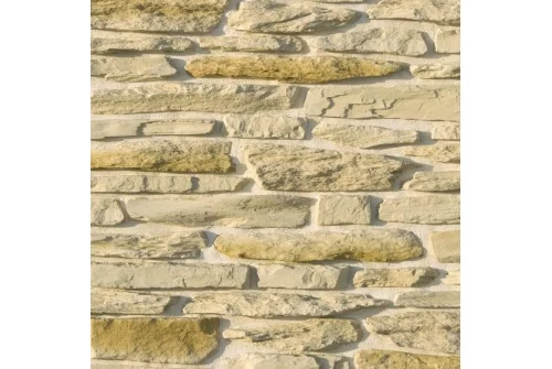 Выступая за плоскость фасада, «Айгер» задает игру линий и форм, света и тени. Натуральность и естественность облицовки подчеркивается чередой мелких и крупных грубоколотых элементов кладки. Укладывается со швом.