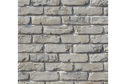 Фактура декоративного камня из новой коллекции выполнена под старину, края кирпичей имеют неоднородную форму, а на поверхности видны выщербленные детали и неровности.