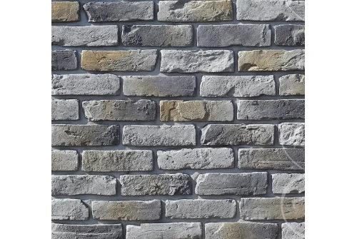 Фактура декоративного камня из новой коллекции выполнена под старину, края кирпичей имеют неоднородную форму, а на поверхности видны выщербленные детали и неровности.