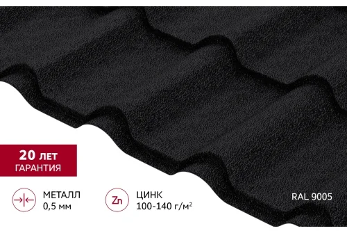 Металлочерепица "Камея" ("Kamea") v01 0,5 Drap RAL 9005 черный