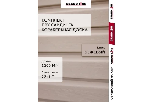 Комплект Сайдинг Корабельная доска Grand Line Standart 1,5м бежевый (22шт)
