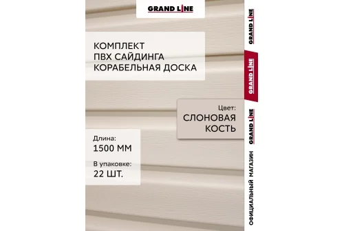 Комплект Сайдинг Корабельная доска Grand Line Standart 1,5м слоновая кость (22шт)
