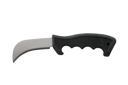 - лезвие имеет крючкообразную форму, что облегчает резку мягких отделочных материалов и гибкой черепицы