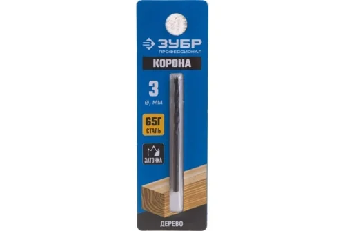 Сверло спиральное Зубр Профессионал (d3x60/30) по дереву М-образная заточка (29421-060-03_z01)
