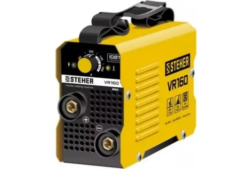 Сварочный инверторный аппарат STEHER 160 А, VR-160 обладает минимальным весом в серии. Это обеспечено небольшим инверторным блоком. Такой аппарат удобно использовать для небольших швов и кратковременных сварочных работ любой сложности.
