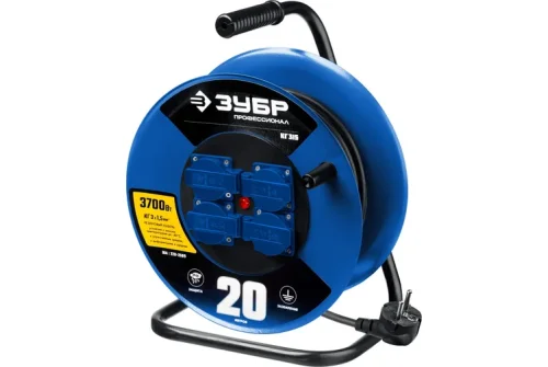 Удлинитель на катушке Зубр Профессионал 3700 Вт, 4 гнезда, IP44, КГ 3х1,5 кв мм, 20 метров (55080-20)