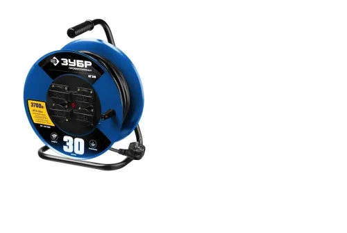 Удлинитель на катушке Зубр Профессионал 3700 Вт, 4 гнезда, IP44, КГ 3х1,5 кв мм, 30 метров (55080-30_z01)