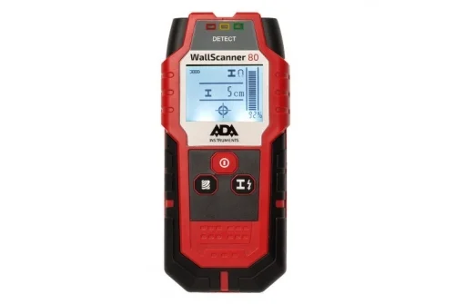 Детектор металла, проводки и дерева ADA Wall Scanner 80 - детектор для обнаружения в стенах, полах и потолках металла цветного и черного, проводов под напряжением и деревянных конструкций посредством электрического сигнала.