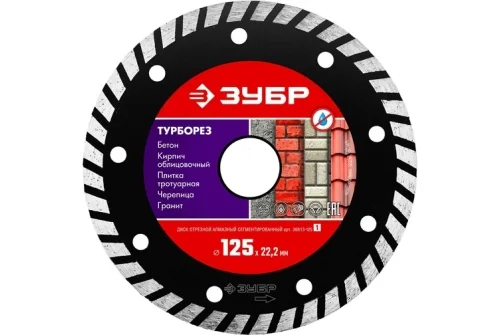Алмазный отрезной диск Зубр Турборез 125мм, по бетону, кирпичу, камню (36613-125_z01)
