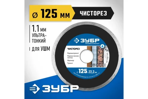 Диск алмазный сплошной ультратонкий Зубр Чисторез Профессионал 125мм (36663-125)