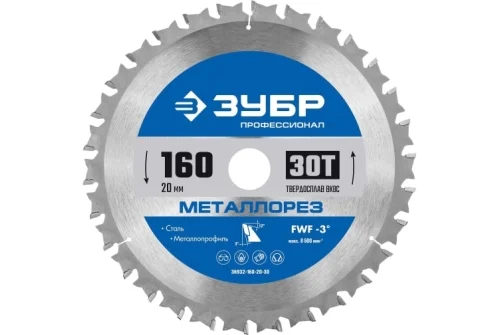 Диск пильный по металлу и металлопрофилю Зубр Металлорез 160x20мм, 30Т (36932-160-20-30)