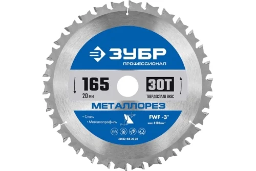 Диск пильный по металлу и металлопрофилю Зубр Металлорез 165x20мм, 30Т (36932-165-20-30)
