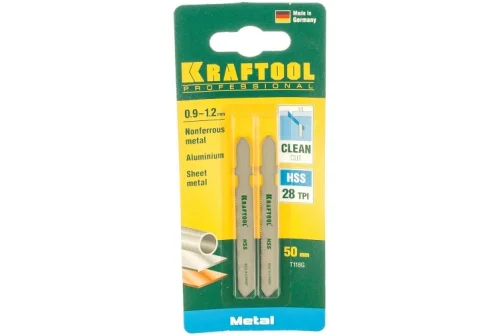 Полотно для электролобзика Kraftool T118G 50x0,9мм по металлу, Т-хвостовик, HSS сталь 2 шт (159551-0,9)