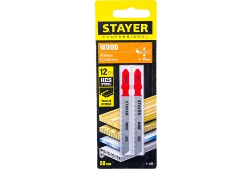 Полотно для электролобзика Stayer Professional T119B 50х2мм, по дереву, фанере, ДСП, Т-хвостовик, HCS сталь, 2шт (15988-2_z02)