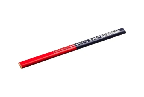 Двухцветный строительный карандаш имеет овальную форму, что позволяет ему не скатываться с наклонных поверхностей.