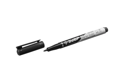 Перманентный маркер ЗУБР МП-100 черный, заостренный наконечник 06320-2 позволяет делать тонкие надписи на небольших предметах. Пишет на любых поверхностях, включая пластик, дерево, металл, бетон, стекло, бумагу.