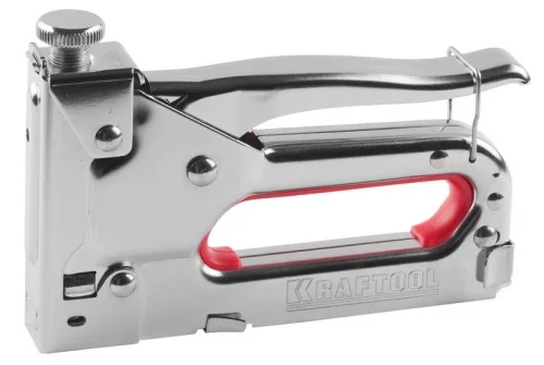 Пистолет KRAFTOOL скобозабивной регулируемый, серия EXPERT предназначен для крепления различных материалов (ткани, обивки, холста, пленки, утеплителя и т.п.) к поверхностям из дерева, ДСП, ДВП, пластика.