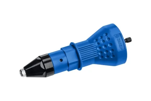 Установка заклепок с помощью насадки и шуруповёрта происходит намного быстрее и легче по сравнению с использованием классических заклепочников,