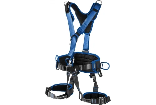 - Пять элементов крепления (1 на спине, 1 на груди, 1 брюшная, 2 боковые) позволяют использовать привязь как страховочную, удерживающую, привязь для позиционирования и спасательных работ.