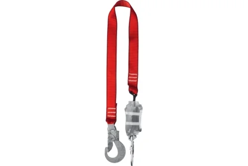 Строп, в сочетании со страховочным поясом или привязью, служит для остановки падения человека при работе на высоте.