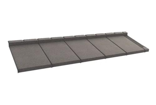 Устойчивая к коррозии сталь с защитным слоем из алюмоцинка, покрытая натуральной каменной крошкой, созданная по уникальной фирменой технологии.