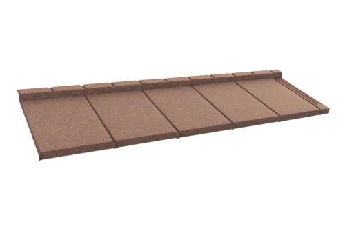 Устойчивая к коррозии сталь с защитным слоем из алюмоцинка, покрытая натуральной каменной крошкой, созданная по уникальной фирменой технологии.