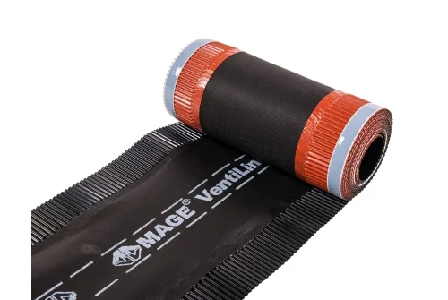При устройстве кровли из композитной черепицы не стоит забывать и об устройстве конька и подконькового пространства, а также коньковой вентиляции. Наиболее популярным материалом на сегодняшний день является перфорированная лента аэроэлемент конька/хребта luxard.
