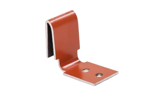 Зажим ендовы представляет собой доборный элемент кровли, который эксплуатируется для фиксации гибкого желоба к кровельной подконструкции. Скоба изготавливается из меди и алюминия.