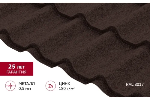 Металлочерепица Классик ("Classic") v01 0,5 Satin Matt TX RAL 8017 шоколад