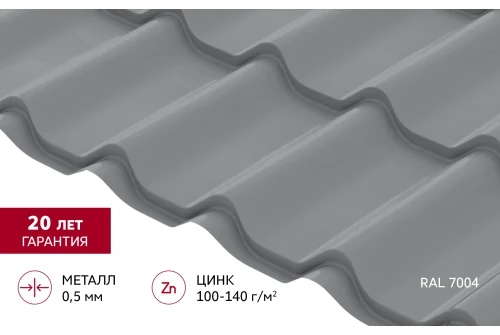 Металлочерепица Классик ("Classic") v01 0,5 Satin RAL 7004 сигнальный серый